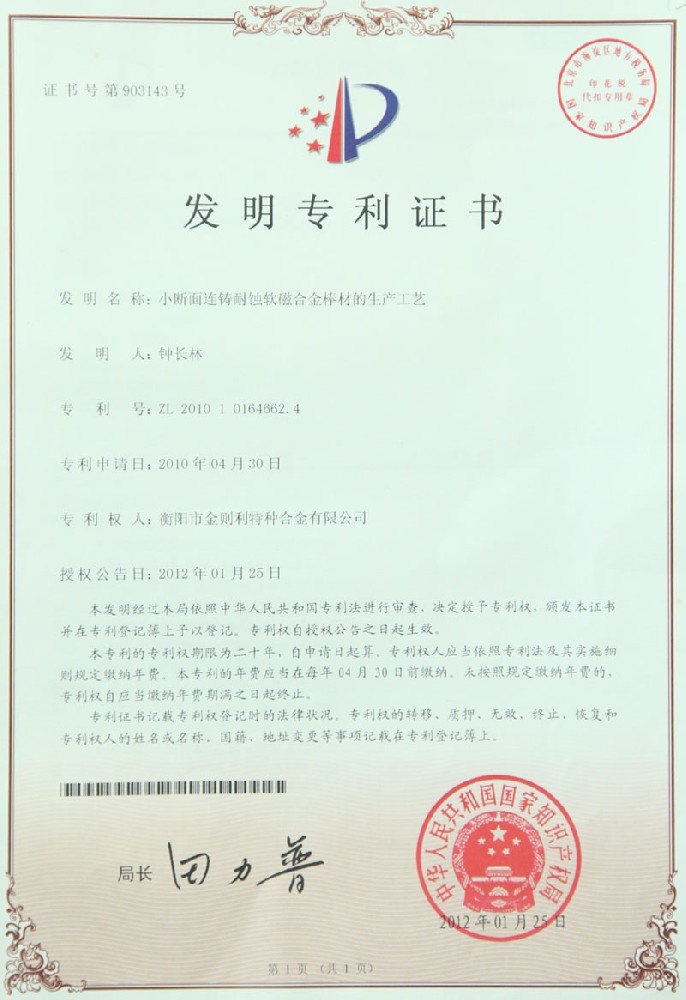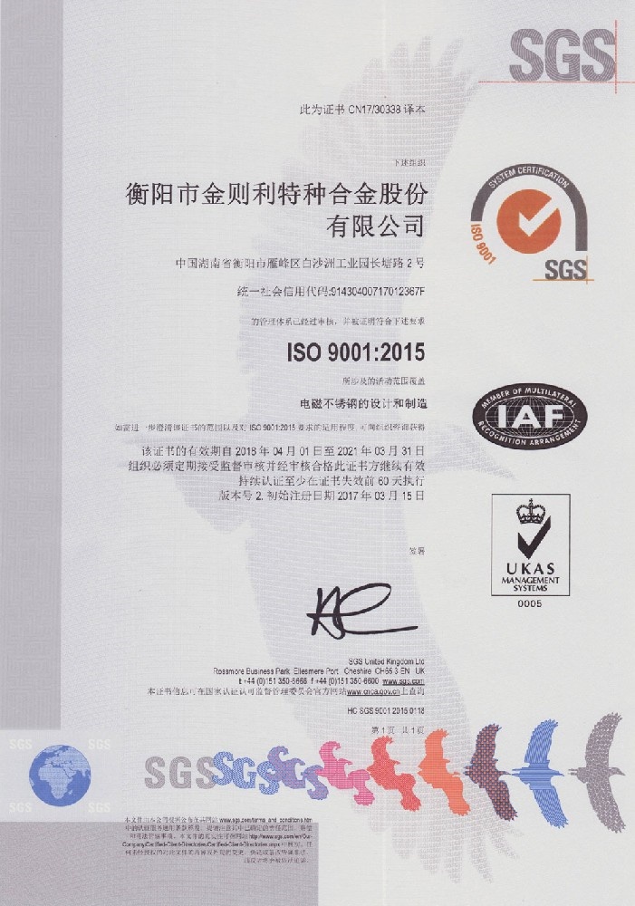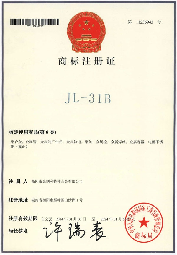 衡陽市金則利特種合金股份有限公司成立于一九九九年十二月,注冊資本人民幣兩千兩百萬元。注冊地址:衡陽市雁峰區白沙洲工業園長塘路2號。公司主營耐蝕軟磁合金,為湖南省高新技術企業。公司自成立以來,即致力于耐蝕軟磁合金的研發。 研制出的JL-31(00Cr13si2Pb)、JL-31B(00Cr13si2)、JL-31BS(00Cr13Si2S)、JL-37B(0Cr17Si2)、JL-37(0Cr17···